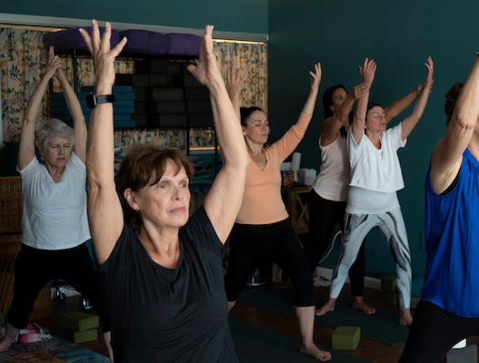 Classes begin with awareness of the breath and gentle warm-ups, then progress into familiar poses, with options and variations offered throughout.